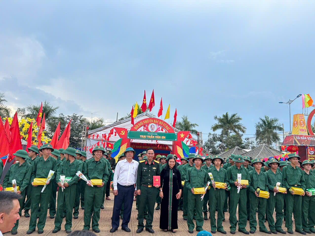 Trong khuôn khổ chương trình Ngày hội tòng quân năm 2026, lãnh đạo xã Đắk Sắk đã đến thăm, động viên 53 thanh niên ưu tú chuẩn bị lên đường thực hiện nghĩa vụ quân sự và nghĩa vụ tham gia Công an nhân dân năm 2026 tại hội trại tổ chức ở xã Đức Lập.